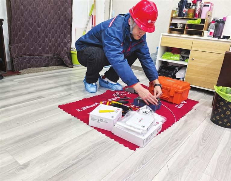 有时,周子毅需要爬高操作。比如处理线路问题或门面房网线安装时,居民家网线一般在弱电箱里,而门面房的网线常暴露在外。为了美观和维护方便,需要将线路隐蔽起来,这就得爬杆子或高处作业。用户王女士在满意度评价中写道:“他们让冰冷的科技有了温度,让我们的生活真正‘智’起来!”