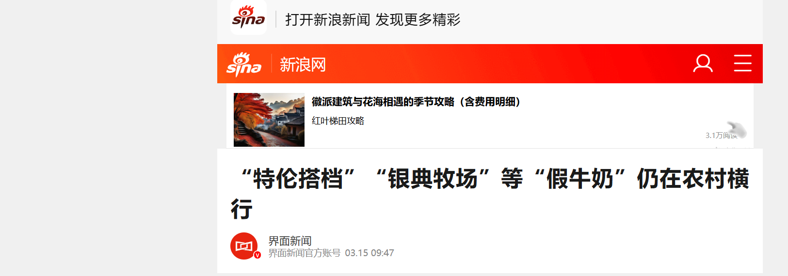 受到各种挤压,特仑苏这样的正牌货,在价格战的漩涡中已经处于历史低位了。一名陕西的乳制品经销商告诉界面新闻,特仑苏在今年春节后的批发价最低32元,经销商的利润非常低,一件利润甚至低到几元。“农村市场确实看到不少山寨的产品,牛奶饮料、不知名的核桃露等,渠道都很隐秘,年轻人基本不会买。”