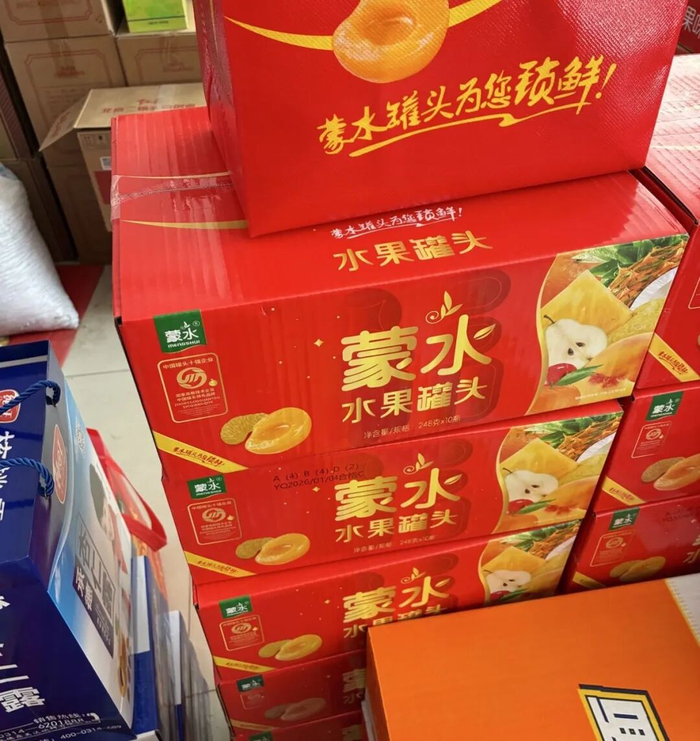 界面新闻在保定市下辖的定兴县杨村镇、北河镇等乡村超市看到,这里的礼盒更多以一二线大品牌产品为主,如伊利、蒙牛、康师傅、南方黑芝麻糊等。货架上还有当地知名品牌,如露露、六个核桃,以及少量的二三线品牌,例如纯旺八宝粥、蒙水黄桃罐头等,明显为山寨的产品并不多。其中一名店老板告诉界面新闻,现在走亲访友的采购者普遍拥有品牌意识,不愿意购买杂牌,更别说山寨产品,从店家自身来说,如果售卖山寨,可能还面临顾客事后退货扯皮的风险。