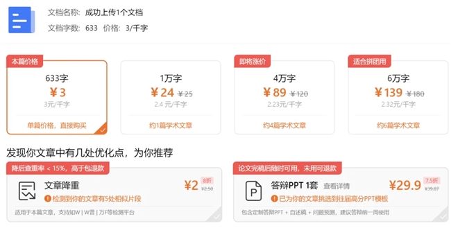 价格:3元/千字,实测比市面上一半的工具都便宜,一次能降到安全线以内,也是很划算了。