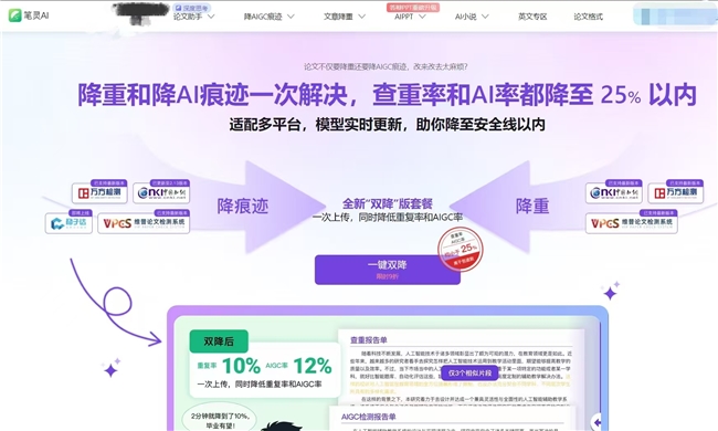 极速降AI的急救型工具,查重和降AIGC双效暴力优化,紧急关头的刚需之选。