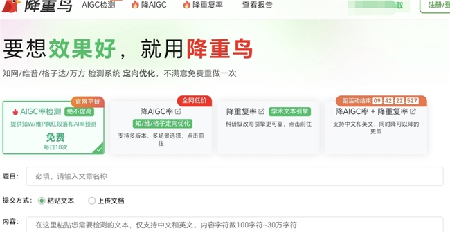 优点:适配知网/维普/万方等主流检测平台定向优化,每日还有10次免费AIGC率检测 预测,能精准定位飘红段落并暴力打乱语序、重构表达,降AI降重效率拉满,几分钟就能看到明显效果,性价比也在线。