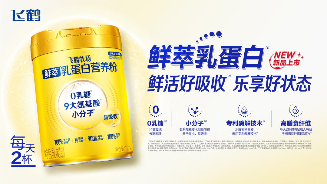 本次大会上亮相的飞鹤牧场鲜萃乳蛋白营养粉,正是飞鹤将乳蛋白科研创新能力转化为全龄营养解决方案的代表性成果。产品面向乳糖不耐、肠胃敏感者、职场人群及中老年群体等多元人群,以飞鹤潜心7年研制的小分子乳蛋白为基底,打造更适配中国人肠胃的优质蛋白补充方案。