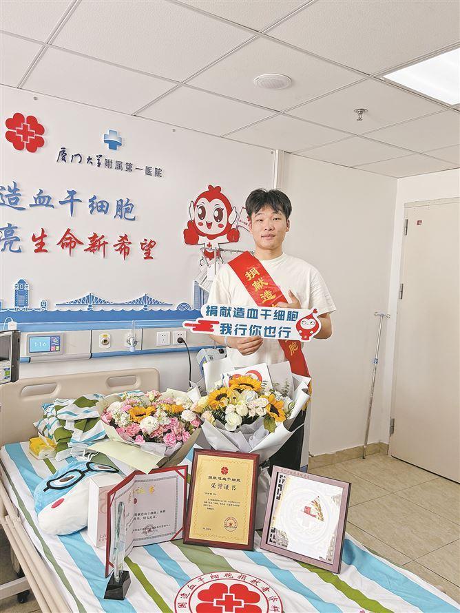 厦门网讯(文/图 厦门日报记者 卫琳)3月17日上午,厦门大学附属第一医院造血干细胞采集室里,传出血细胞分离机的“嗡嗡”运转声,一份承载着生命希望的造血干细胞混悬液正在被采集,预备着为远方的患者送去新生的曙光。捐献造血干细胞的小伙子叫付才明,来自厦门兴才职业技术学院。他是全校第一名捐献造血干细胞的学生,也是厦门市第176例捐献者。