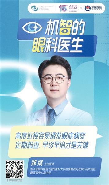 “郑主任,我的两只眼睛一只650度,一只600度,高度近视会不会瞎啊?”上周的门诊,26岁的小伙走进浙江省眼科医院(温州医科大学附属眼视光医院)杭州院区眼底病中心副主任郑斌主任医师的门诊。