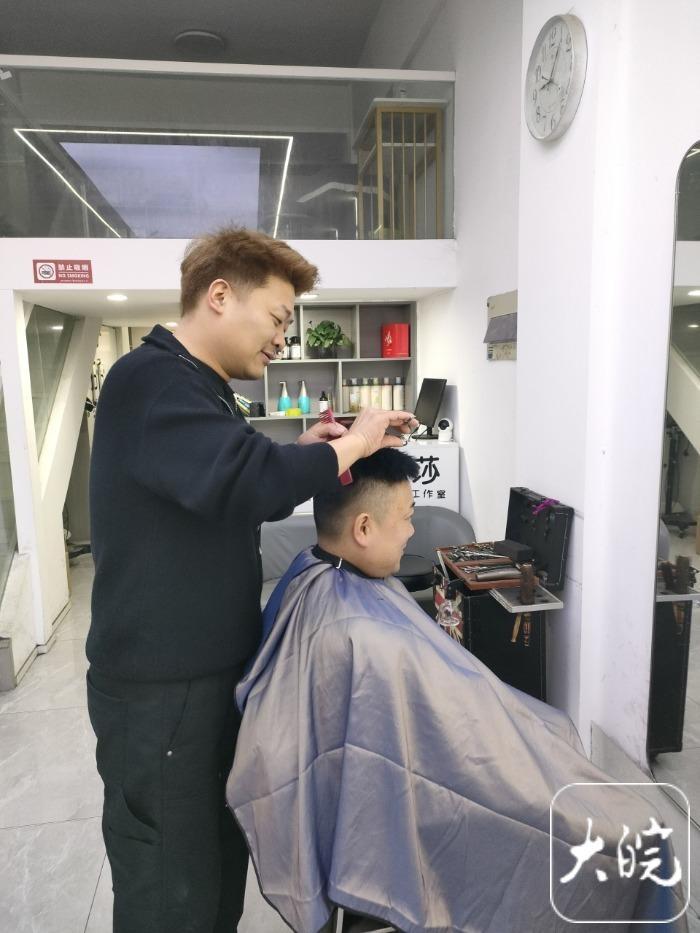 合肥贵池路一家理发店内,发型师正为顾客理发。