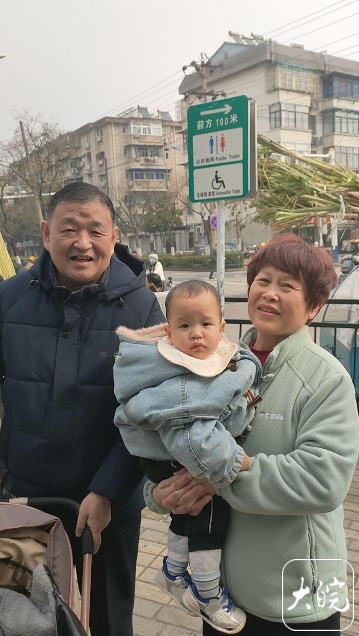 20日上午10点,在合肥桐城路桥头,便民理发摊的理发师李萍正在为顾客理发,还有几位顾客正在排队等候。市民左大叔和老伴卞大妈带着16个月大的外孙来理发,孩子理发时不适应,哭泣起来,老两口正在哄。“特意等到这一天来理发。”卞大妈说。