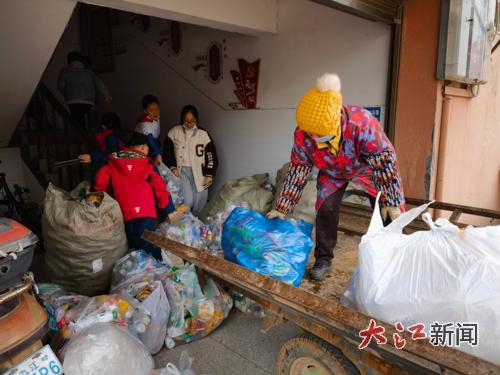 学生们到社区、公园等地收集塑料瓶或易拉罐。(彭芳芳供图)