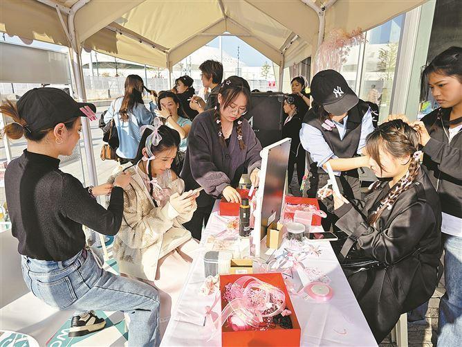 不同的价格区间满足不同歌迷的需求。“以前来看演唱会,想找人帮忙化妆,能选的不多,关键是化妆师技术参差不齐,好像‘开盲盒’。”刚完成妆造的本地歌迷张女士说,像屈臣氏这类大品牌主动下场,“虽然贵一点,但更放心。”