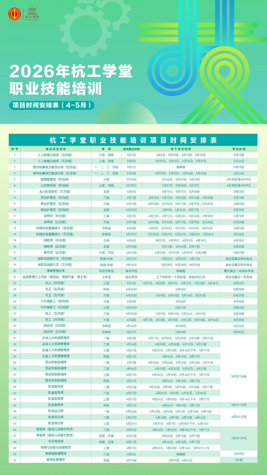 好消息,杭工学堂2026年职业技能培训全新上线啦!想就业、想学实用技能?这儿全都有!考证后还有补贴可以领,一起来看。