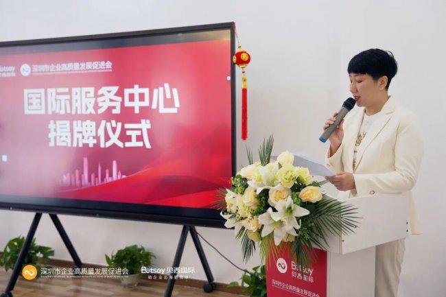 深企高质会常务会长刘欣然在揭牌仪式上表示:“我们成立国际服务中心,就是要把高质会的平台资源与贝西国际的落地能力结合起来,让会员企业出海不再孤军奋战。”