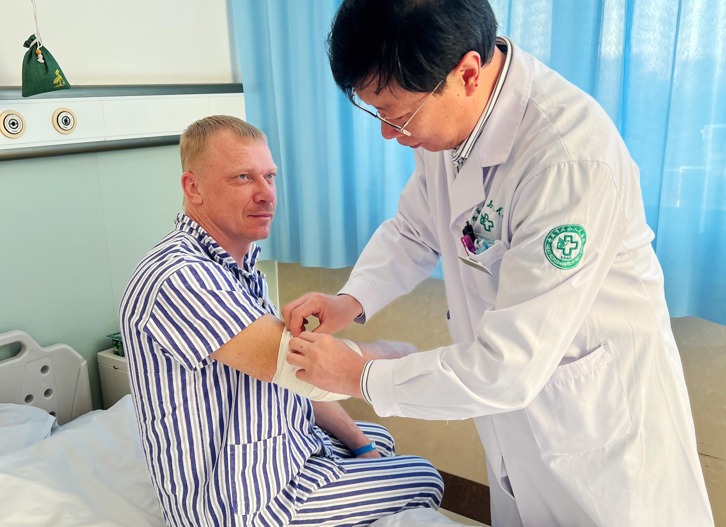 阿列克桑德尔·奇日科夫动情地说道:“在异国他乡受伤是不幸的,但是遇到了这么优秀的医护团队,又是幸运的,感谢大家像家人一样照顾我、关心我,让我感受到了家一般的温暖,我会永远记住你们!”(通讯员 宫晓莉)