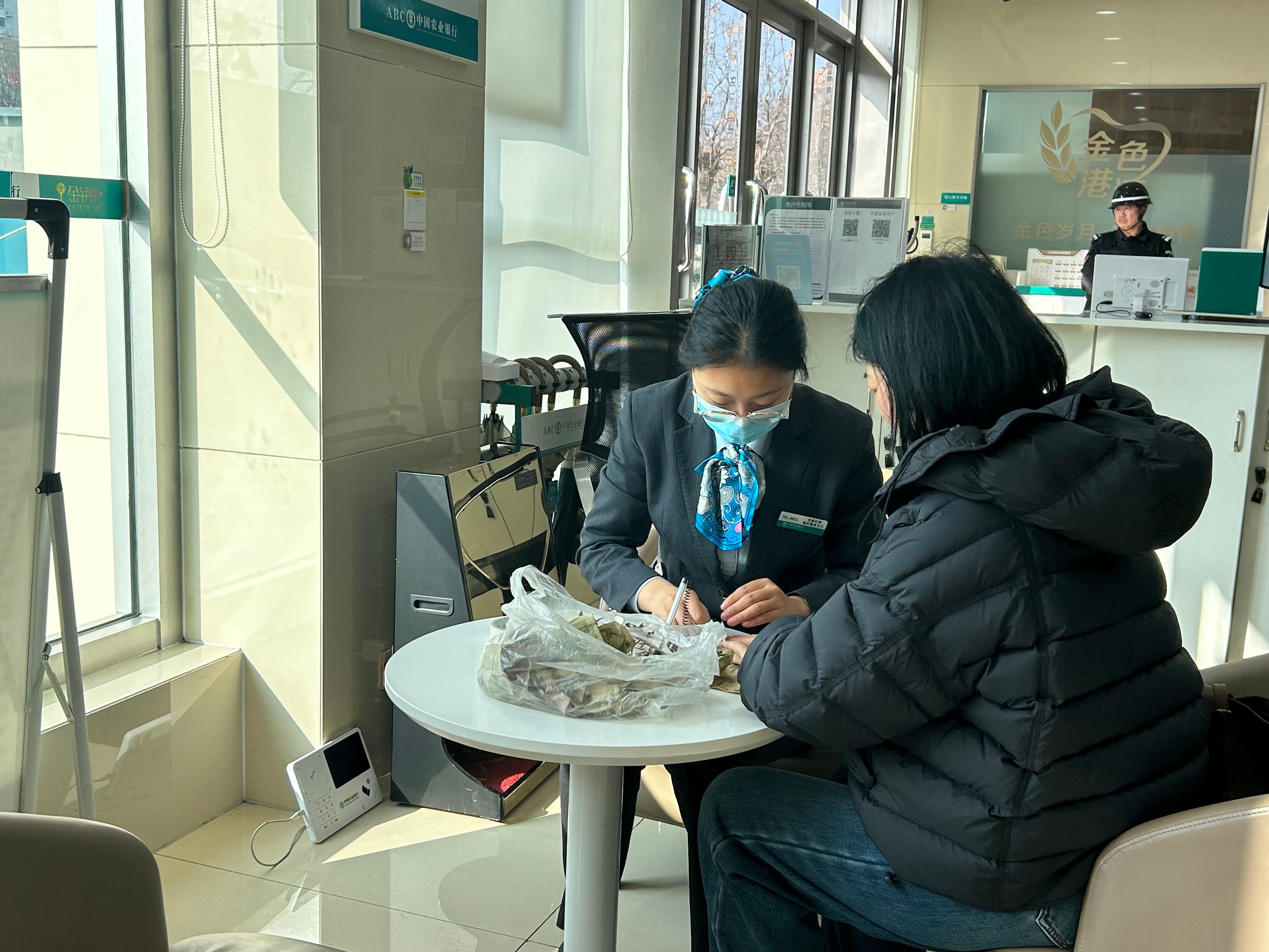 鲁网3月29日讯近日,暖阳透过落地窗洒满中国农业银行银雀山支行的营业大厅,一位身着黑色羽绒服的女士,手提一个鼓鼓囊囊的透明塑料袋,脚步迟疑地走进网点。正在巡视的邴经理立刻迎上前,微笑着询问:“您好,请问您要办理什么业务?”
