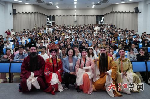 如今陈俐的课堂上,师生同台已是常态。陈俐常陪着戏剧社的学生排练,和他们一同演出。从被动的“听”,到主动的“做”,赣剧的种子就这样悄悄落进了年轻人的心里。