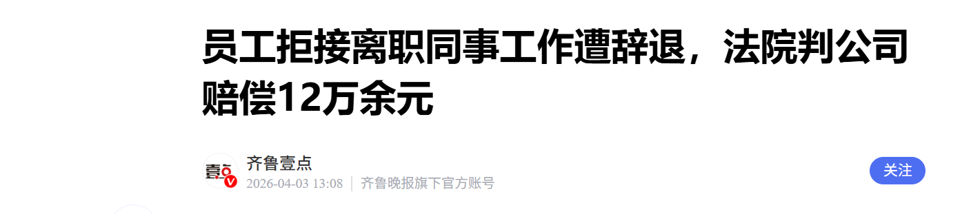 2023年3月22日,该公司主管宋某通过公司内部邮件正式通知李清,要求其自即日起接手离职职工刘某的电商订单业务。李清于次日回复“收到”,但随后便第一时间与主管沟通,以自身工作较忙、无法兼顾为由,请求公司安排其他人员暂时接手该部分工作。此后,双方就工作安排多次沟通。李清明确表示,自己工作量已饱和,2023年3月刚接手另一名离职职工的餐饮订单后,对接销售人员从18名增至52名,工作压力大幅增加,若再接手电商订单,必然需要大量加班,既超出合理负荷,也无法保证工作质量。但公司坚持认为,安排合理合法,订单组其他人员均已接手离职同事工作,李清的拒绝属不服从管理,违反劳动合同约定。2023年6月21日,公司以李清“受到一次书面警告后,再次违反公司规定,拒绝正常工作安排”为由,向其正式发送辞退通知书,单方解除了双方的劳动合同,且未支付任何经济补偿。李清于2023年7月申请劳动仲裁,请求依法判令公司支付违法解除劳动合同赔偿金12.93万元。仲裁裁决确认李清与公司2020年9月1日至2023年6月21日期间存在劳动关系,但驳回了李清的其他仲裁请求。李清向北京市朝阳区人民法院提起诉讼。一审法院经审理认为,李清确实存在拒绝公司工作安排的情形,但该行为不足以构成公司单方解除劳动合同的法定理由。按照一般工作经验及逻辑,刘某离职后,其负责的电商订单工作内容全部交接给李清,必然会增加李清的工作量。结合李清提交的沟通录音及公司提交的加班考勤表,能够确认李清在接手刘某工作前即已存在加班情形,而公司未能提交充分、有效的证据,证明李清的工作量并不饱和,也未证明由李清接手该部分工作的合理性与必要性。据此,一审法院判决该公司支付李清违法解除劳动合同赔偿金12万余元;驳回李清的其他诉讼请求。公司不服,提起上诉。北京市第三中级人民法院经审理,依法作出终审判决:驳回上诉,维持原判。(工人日报)