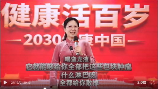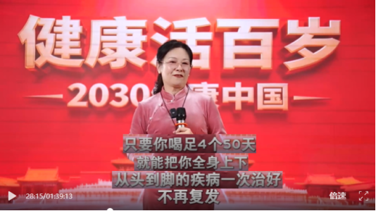 节目中,崔津芳宣称“喝蛮龙液50天血液干净,50天细胞换新,50天脏腑恢复,50天健康新生。”