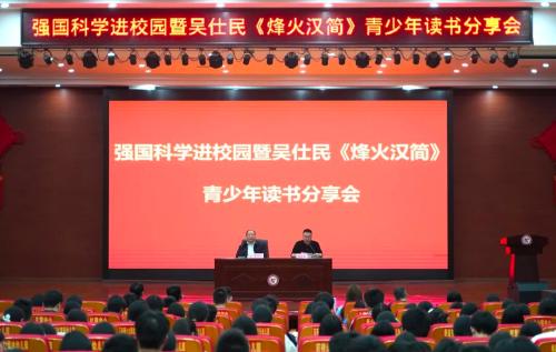 4月7日下午,余干一中第五报告厅内座无虚席,“强国科学进校园”暨吴仕民《烽火汉简》青少年读者分享会在这里举行。本次活动旨在通过文学经典的引介,促进人文素养与科学精神的融合共生。