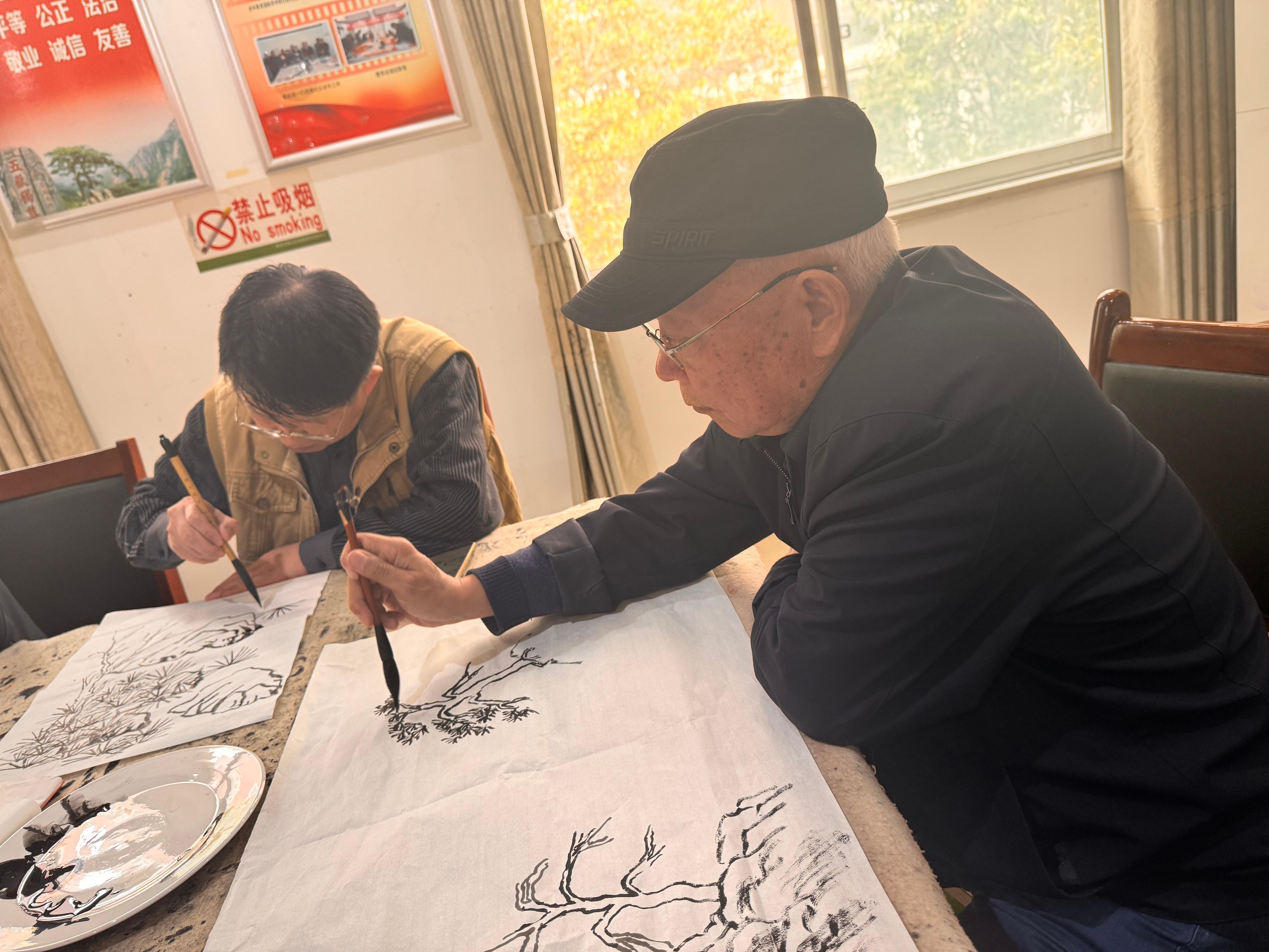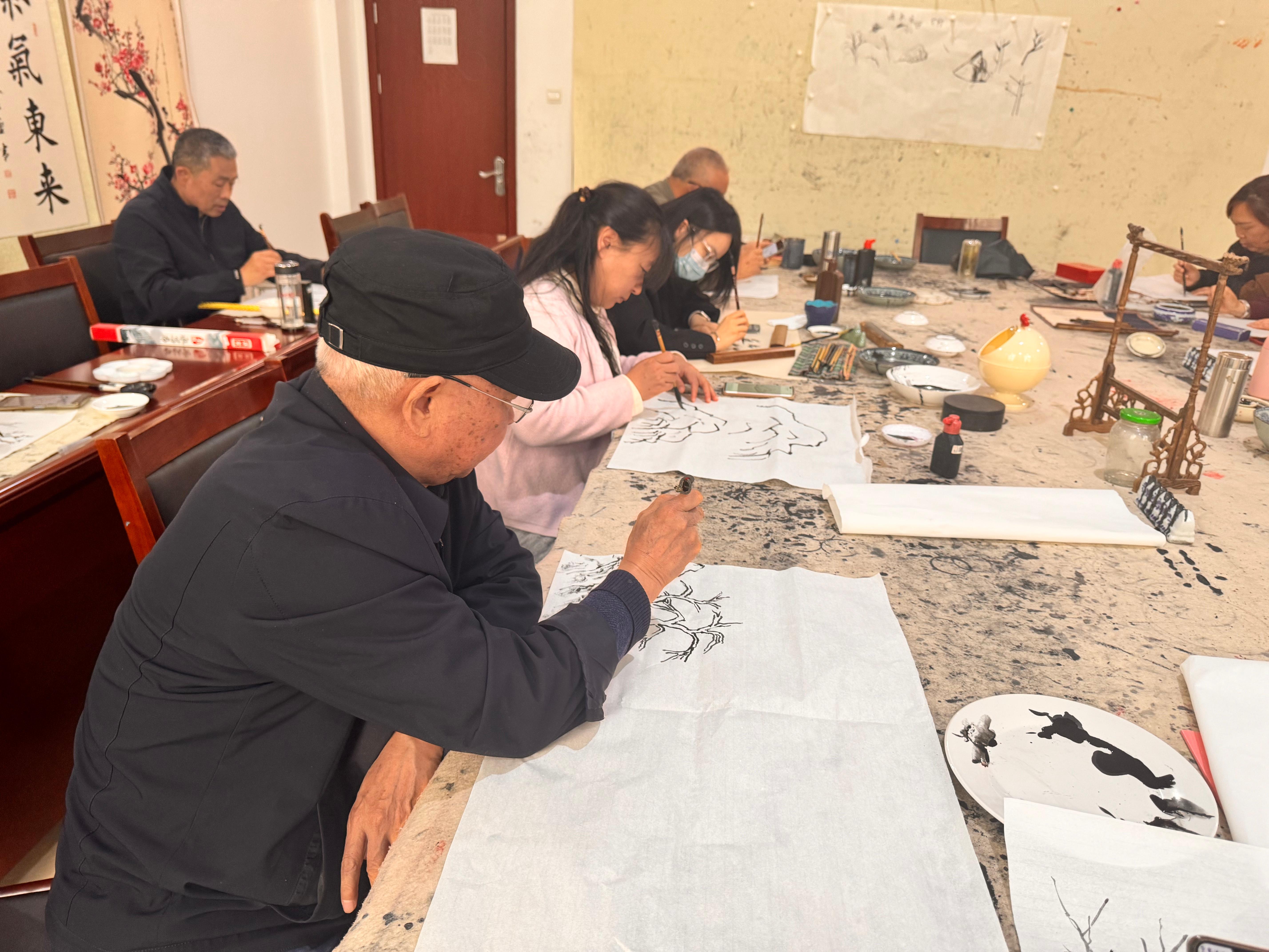 参与课堂的居民们兴致盎然,个个精神饱满、全神贯注,纷纷拿起毛笔,蘸墨、落笔、勾勒、渲染,在宣纸上认真尝试创作。大家沉浸在墨香与笔尖的交融之中,时而低头仔细描摹,时而相互交流探讨绘画心得,现场墨香四溢、氛围融洽,处处洋溢着浓厚的艺术气息。不少居民表示,平日里忙于工作和生活,很少有机会接触国画艺术,社区开设这样的公益课堂,不仅让大家学到了专业的绘画技能,更在笔墨丹青中舒缓了身心、陶冶了情操,极大地丰富了业余文化生活。