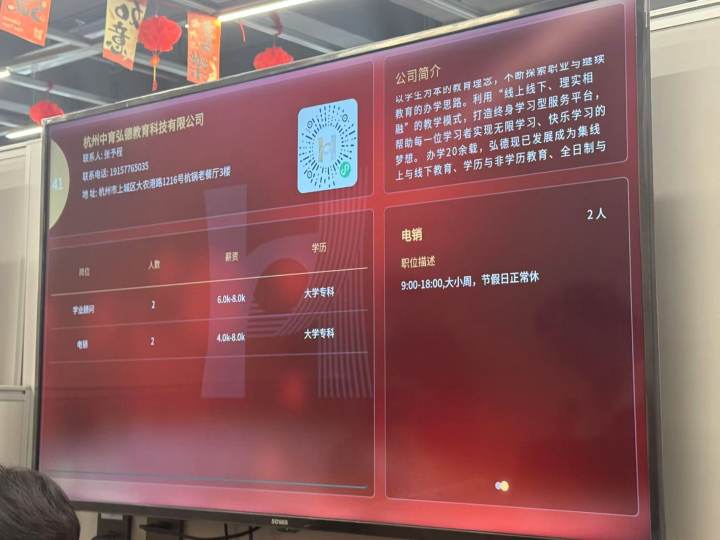 招聘会现场,一些原本要求不高的岗位,也被突如其来的海量简历“卷”成了高端局。浙江弘德教育科技集团有限公司业务经理张先生介绍,公司在上个月的招聘中,一个岗位出现了140份简历招3人的现象。