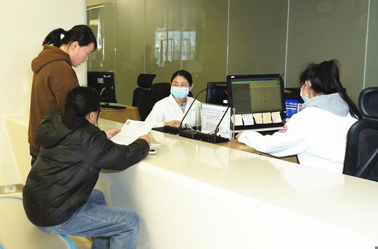 3月31日,河北燕达陆道培医院住院部大厅缴费窗口前,患者家属办理住院手续。河北日报记者刘杰摄