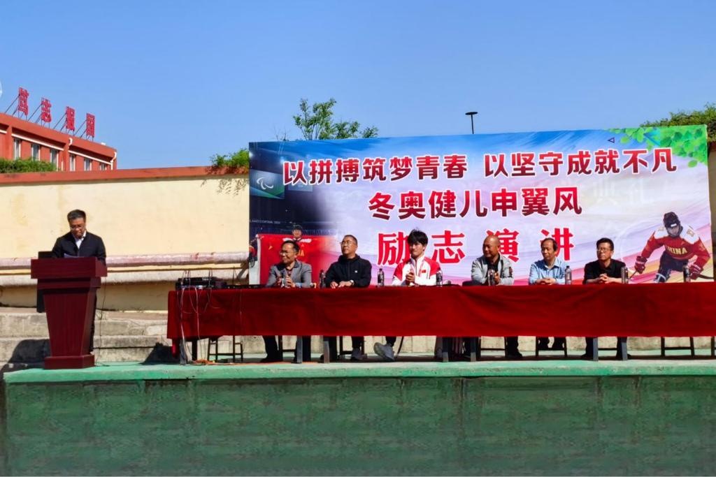 河北新闻网讯(刘江民、霍然)4月10日,邢台沙河市新城中学邀请中国残奥冰球队队员申冀风到校,开展了“以拼搏筑梦青春,以坚守成就不凡”主题励志报告会。全校师生齐聚一堂,共同聆听这位冰上“小旋风”用汗水书写传奇的奋斗故事。