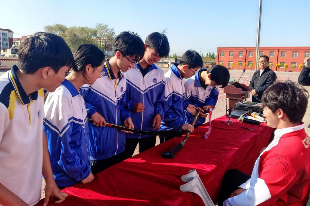 互动环节,学生们踊跃提问,从训练中的困难到面对挫折的勇气,申翼风逐一耐心解答。学生代表为申翼风献上鲜花,致敬这位用拼搏诠释青春的英雄;申翼风则挥毫赠言,将真挚的祝福与满满的正能量留在现场,整个互动过程温暖感人。