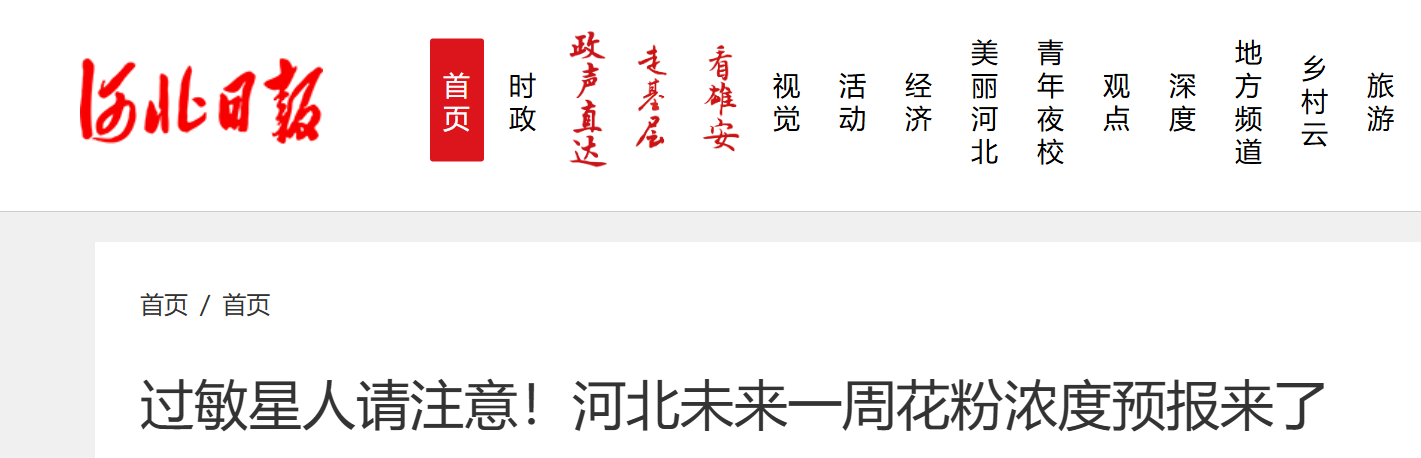 河北省气象局、河北省卫生健康委、河北省林业和草原局4月15日11时联合发布未来一周花粉浓度预报服务提示: