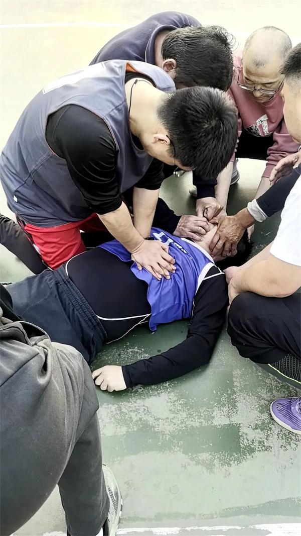 来不及片刻迟疑。他一边让球友拨打120,一边跪地实施心肺复苏。一下、两下、三下……