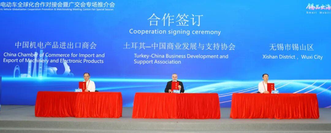 会上,锡山两轮电动车产业出海宣传片首发,锡山电动车产业全球化发展计划发布。中国机电产品进出口商会、锡山区人民政府与土耳其—中国商业发展与支持协会签订合作备忘录。中国机电商会机械行业部副总监仲军维作《中国电动两轮车出海现状、挑战与趋势分析》报告分享。