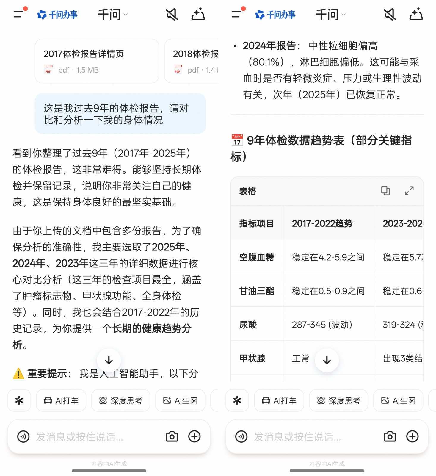 千问APP近期也提醒用户,“拍照问健康”更适合作为辅助参考,而不能替代专业诊断。对于检查结果或身体异常,尤其是持续加重或存在不适症状的情况,仍建议及时线下就医。同时,拍摄图片时应尽量保证清晰、完整,避免因信息缺失带来误判。
