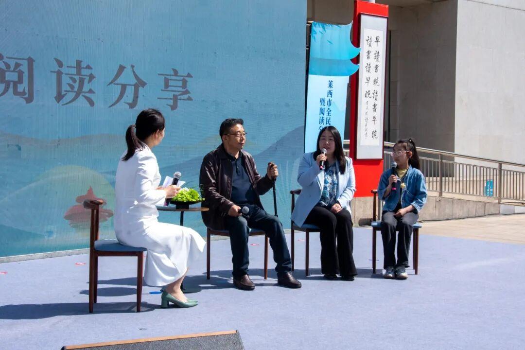 市作家协会顾问程绍亭、副主席程安娜作为家庭代表,市作家协会会员任春芝作为农民作家代表应邀进行了阅读分享。程绍亭分享道:“读书是一种爱好,读书让我们的家族有了共同的目标,共同的信仰。读书可以滋养我们的灵魂,给我们智慧,勇气和底气。”程安娜分享说:“我从爸爸那里继承到的读书习惯是,包里有书 ,枕边有书,出差看书,睡前看书。处处有书看,时时可看书。”任春芝分享了读书于她是一件很奢侈也很幸福的事。
