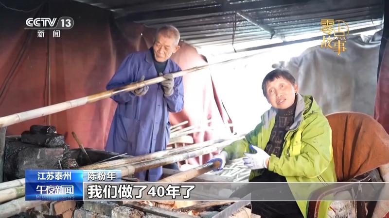陈粉年:儿子就说我们两个人太辛苦。他说,你要多少钱,我养你们。我就说,溱潼会船数第一,这个篙子的活不能拒绝,八家作坊就剩我们一家。我说不喊苦。怎么办,就学的这个手艺,吃的这个饭,40年了,我们做了40年。