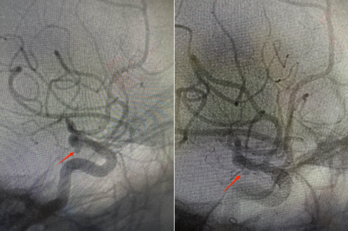 术后造影显示,动脉瘤开口被完全覆盖,支架贴壁良好,动脉瘤内造影剂明显滞留,瘤体附近穿支动脉保留完好,载瘤动脉血流通畅,手术取得圆满成功。患者术后第二天正常下地活动,第三天顺利出院。