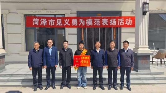 鲁网4月20日讯(记者 李昊)为弘扬见义勇为精神、致敬平民英雄壮举,凝聚全社会向上向善的强大力量,4月20日,菏泽市委政法委、市见义勇为基金会专程来到曹县张健的家中举行表扬仪式,向穿越浓烟隧道在火海中救人的张健授予“菏泽市见义勇为模范”称号,并发放奖金10000元。