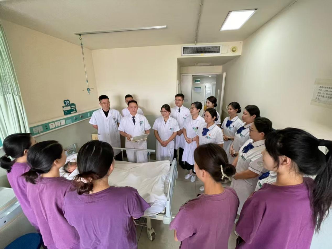 廉主任和护士长组织大家进行早交班,值班人员汇报夜间患者情况,对患者的病情做到心中有数。随后组织查房,对于疑难患者,大家各抒己见,共同制定康复方案。“昨晚休息的怎么样?”“这几天血压控制的怎么样?”“胳膊能抬起来了吗?”“腿还疼吗?”……医护技根据患者的反馈,仔细查看病历,规划当日的康复方案,同时耐心解答患者及家属的问题,安抚他们的情绪。
