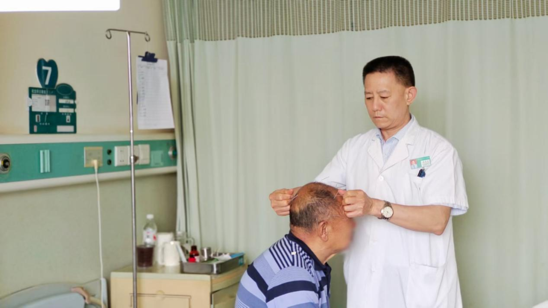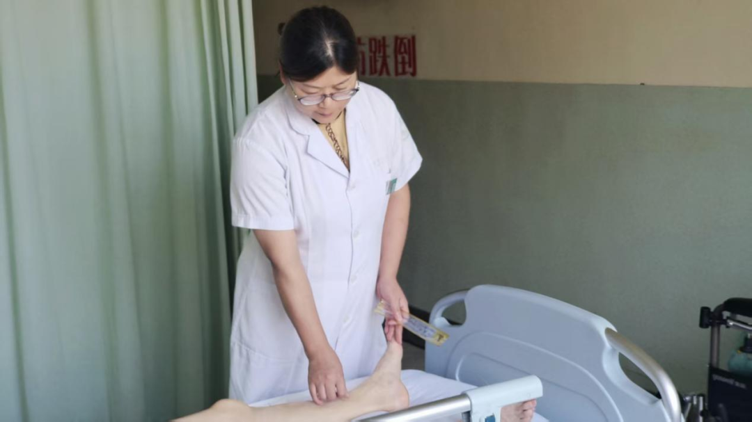 孙美丽副主任根据患者的病情选取穴位,提插捻转间,银针精准地刺入穴位。“来!大姨,抬抬腿看看,使劲抬,好好……”针灸完,家属高兴地说:“孙主任,我妈今天腿比昨天抬得高了很多……”