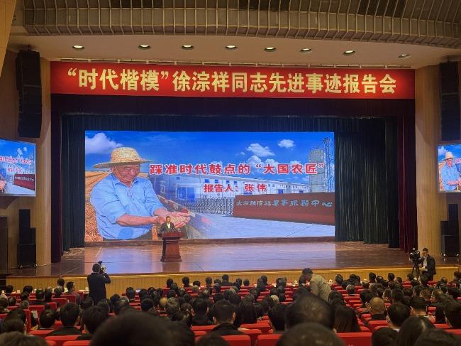 大皖新闻讯 春和景明,沃野生辉。4月22日,“时代楷模”徐淙祥同志先进事迹报告会在安徽大剧院隆重举行。六位报告人从不同视角,深情讲述了这位七旬老农扎根皖北平原五十余载,以一生践一诺、以科技兴农业、以大爱带乡邻的感人历程,生动展现了新时代种粮人的责任与担当。