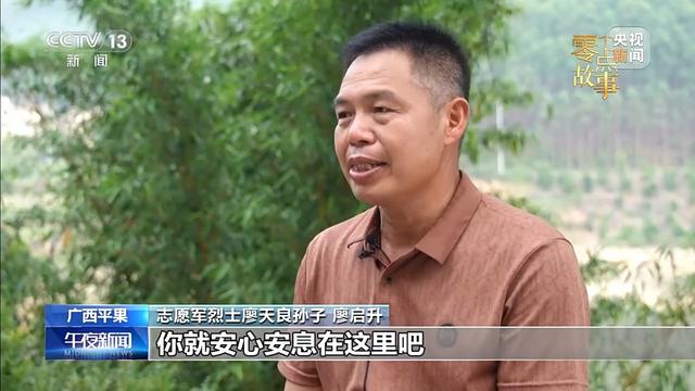 志愿军烈士廖天良孙子 廖启升:姑姑就嘱托我到那里帮她跟我爷爷说,爸爸,我在家,我很好的。你就在这里安息吧,我现在过得很好。有我们祖国,有我们政府的关心我很好的,你就安心安息在这里吧。