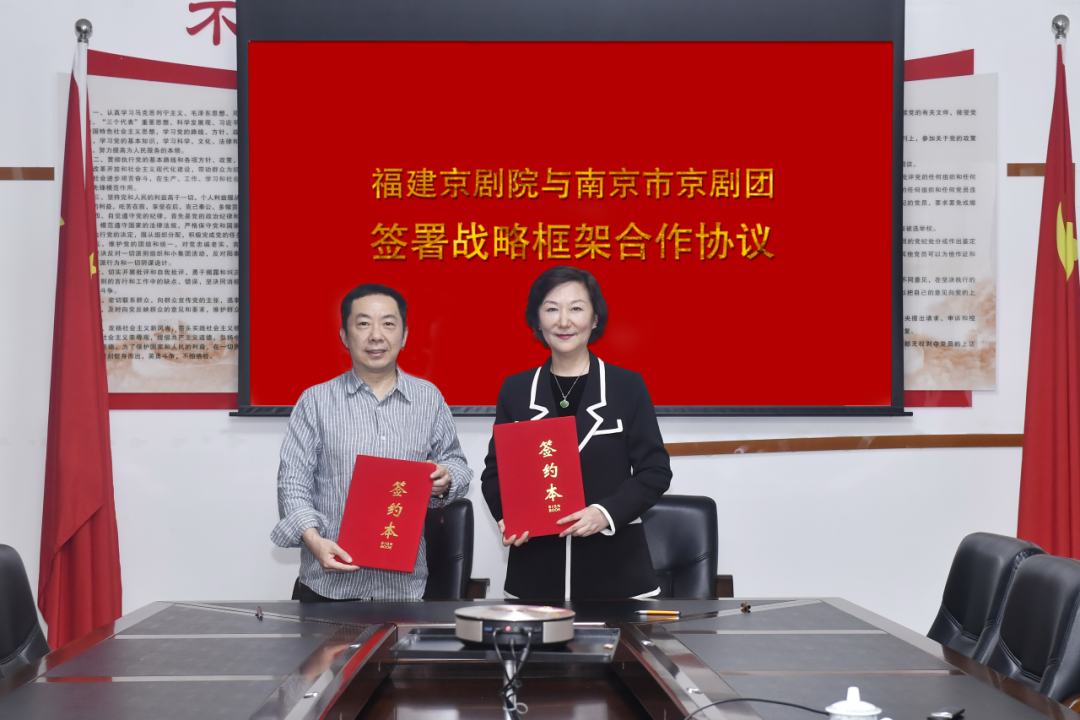 签约现场,福建京剧院党总支书记、院长孙劲梅与南京市京剧团团长王珏共同签署战略共建协议,明确在艺术交流、人才培养、资源共享这三大领域展开深度合作。