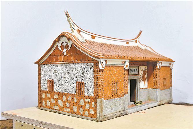 蔡和杰按1∶20比例制作的微缩版蚵壳厝。
