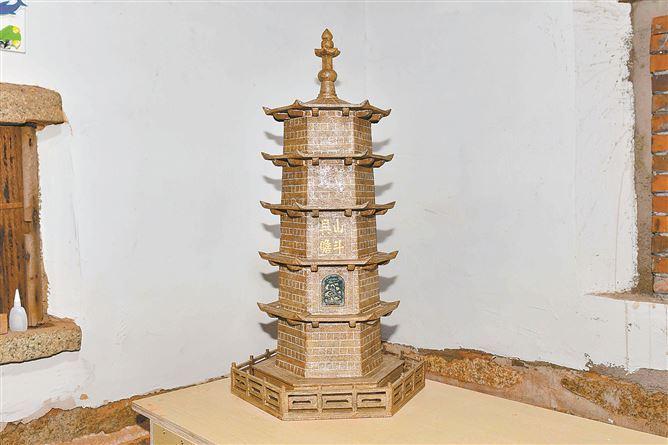 蔡和杰制作的文笔塔模型。塔高87厘米,底座直径48厘米。