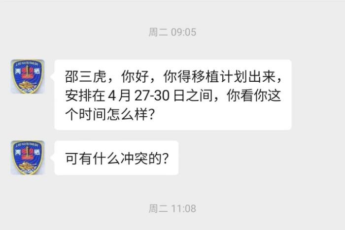 迟迟等不到通知的日子,邵三虎心里直打鼓。“造血干细胞配成不容易,我总在想,是不是孩子出了什么状况,为什么一直没消息。”他常常忍不住琢磨,又不敢多想。直到4月14日,具体的采集计划终于定了下来:4月27日至30日进行捐献。