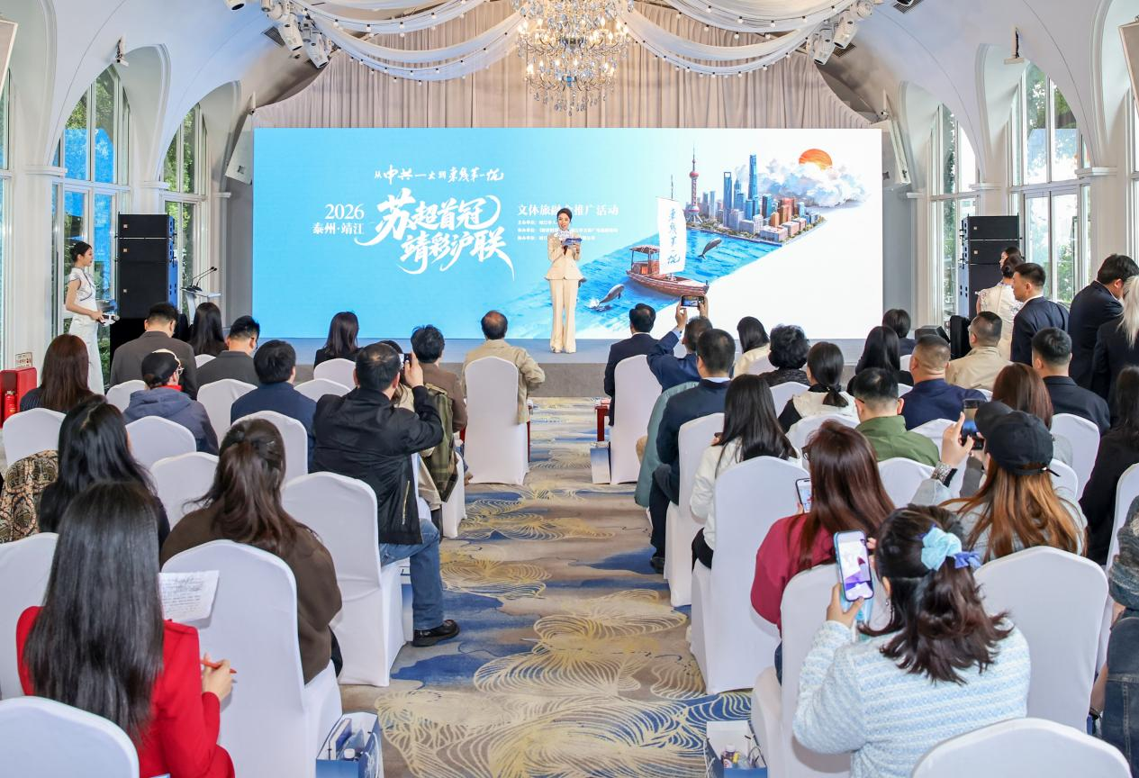 黄浦江潮涌,扬子江欢歌。4月23日上午,“从中共一大到东线第一帆”2026泰州·靖江“苏超首冠 靖彩沪联”文体旅融合推广活动在上海北外滩滨江举行。靖江带着一江春水的温润、冠军之城的热血、融沪发展的诚挚,与上海赴一场春日之约、文体之约、融合之约。