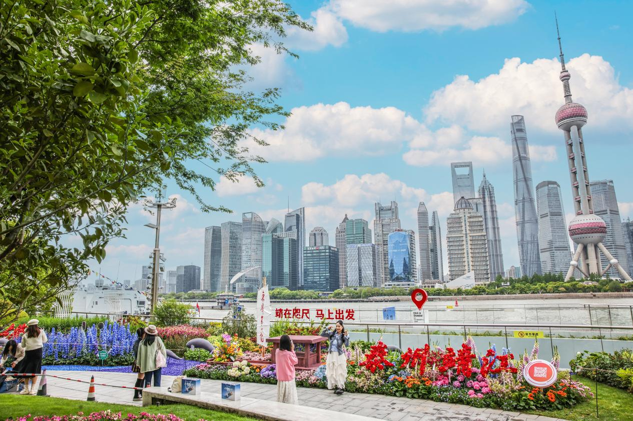 在北外滩滨江绿地内,一处400余平方米的艺术展陈,融入申城春色,吸引各国游客驻足打卡。这里是靖江精心布置的户外体验展区,也是上海国际花卉节虹口分会场的一大亮点。展区以上海城市符号石库门为起点,移步换景间,一路看繁花相伴、赏江豚戏水,“东线第一帆”临江而立、风帆招展,既镌刻着渡江战役的红色记忆,也彰显着靖江勇立潮头的奋进姿态。这里还是陆家嘴四大地标的最佳合影点,城市天际线与浦江盛景交相辉映,现代都市繁华与滨江城市风情完美同框。