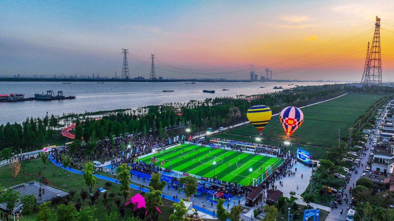 2026年,靖江发扬冠军精神,举办乡村足球超级联赛。4月19日,靖江“村超”揭幕战在长江之畔火热打响,以“足球 ”绘就乡村振兴新图景。足球成为连接城市的热血纽带,让沪靖两地交流充满激情与活力。
