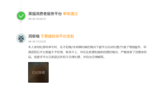 另有消费者反映,松果出行在其不知情/未明确同意的情况下被平台自动扣费/开通了增值服务。