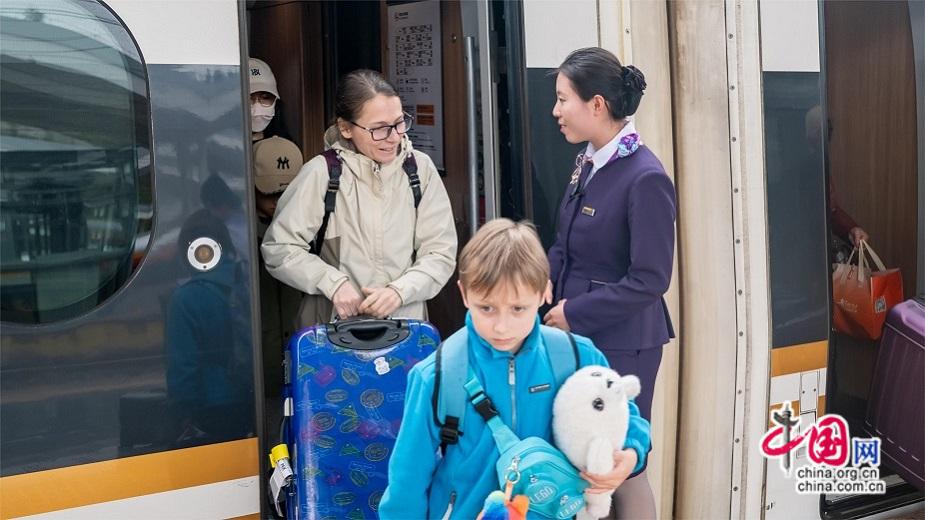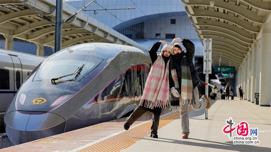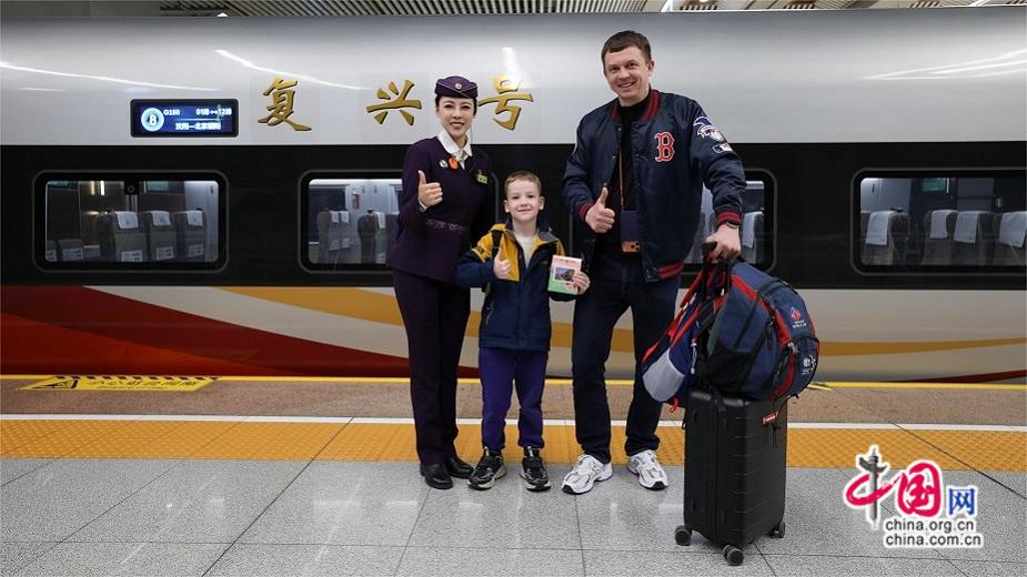 随着中国免签“朋友圈”持续扩大,越来越多外国游客将高铁作为探索中国的首选交通工具。飞驰的复兴号不仅拉近了地理距离,更成为外国友人感知中国式现代化、体验中华文化的“移动窗口”。从春运首日的宁德站,到开往长白山的冰雪列车,一幕幕中外友好交流的温暖瞬间,正在万里铁道线上生动上演。