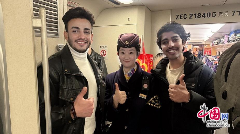 从站台到车厢,从遇见到道别,一列列飞驰的高铁正载着世界各地的朋友,穿行在广袤的中国大地上。他们拍下窗外的风景,品尝车上的美食,也记住了乘务员温暖的笑容——这些真实而生动的“中国故事”,正沿着铁轨不断传向远方。