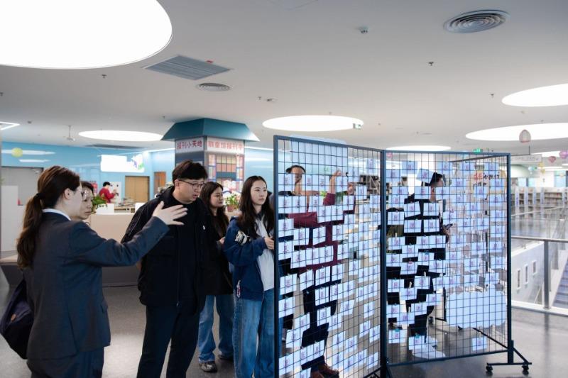 随后,大家在黄浪的带领下来到了少儿馆二楼,这里主要面向6—16岁少年儿童,有13万册藏书。在一面互动留言墙边,采访团被小朋友的天真提问、大朋友的走心解答所吸引,童趣与思考的碰撞,成为馆内一道独特风景。据介绍,这两层少儿馆人气很高,单日客流峰值一度达到8000人次。